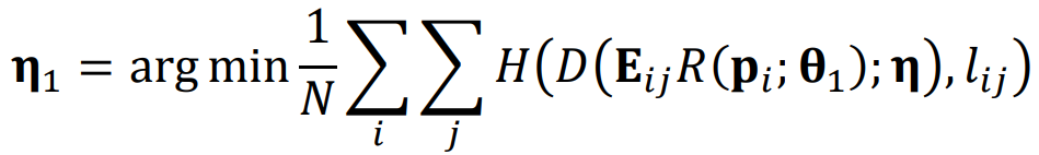 위 식이 사용되고, R은 reconstruction sub-network에서 나온 결과, E는 patch extraction matrix, D는 detection sub-network, H는 cross entropy loss입니다.