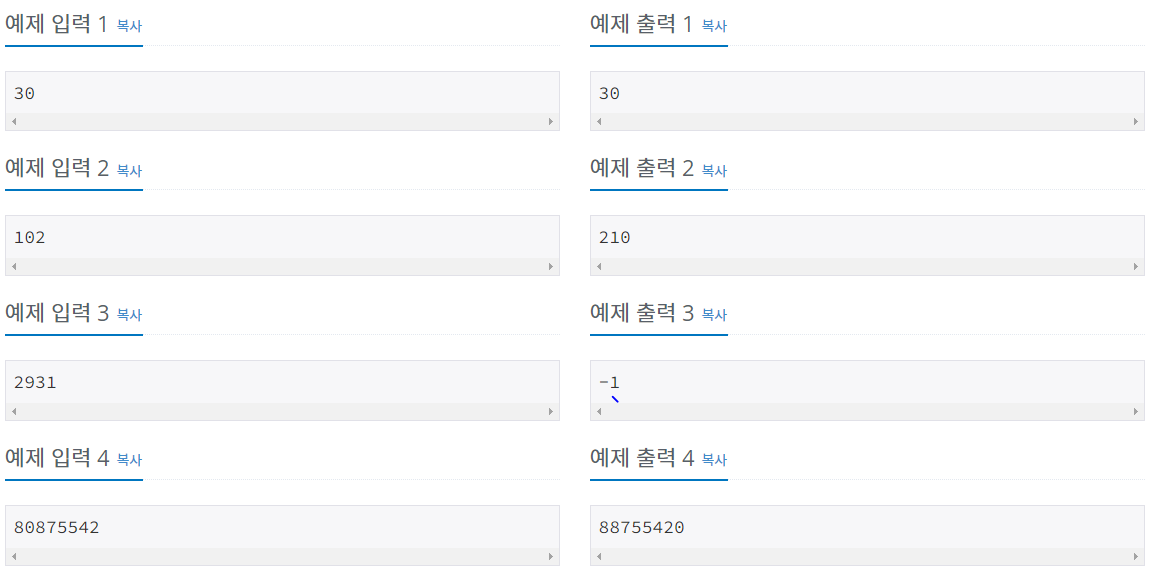 미르코가 만들고 싶어하는 수가 존재한다면 그 수를 출력하라. 그 수가 존재하지 않는다면, -1을 출력하라.
