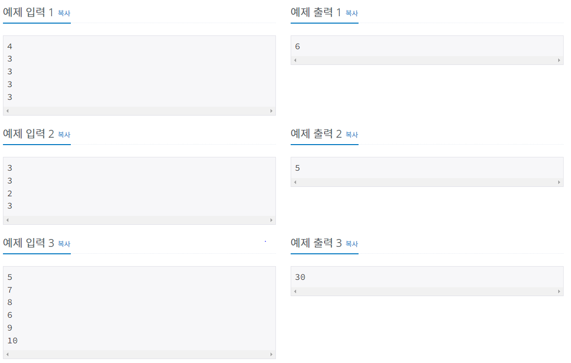 스타박스 앞에 있는 사람의 수 N과, 각 사람이 주려고 생각하는 팁이 주어질 때, 손님의 순서를 적절히 바꿨을 때, 강호가 받을 수 잇는 팁의 최댓값을 구하는 프로그램을 작성하시오.